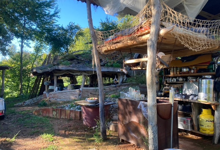 Wohne in einer Jurte, versorg Dich mit dem, was der Garten zu bieten hat, trink frisches Quellwasser, koche in der Außenküche oder am Feuer, schlafe draußen...